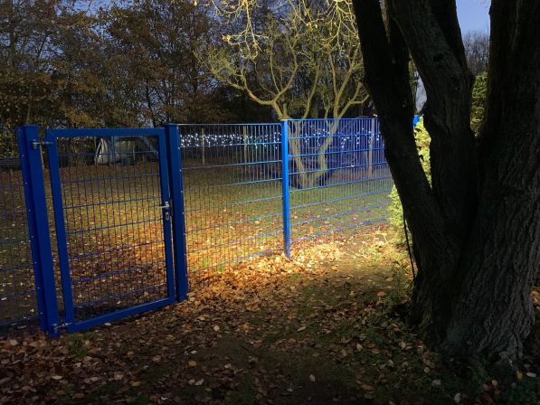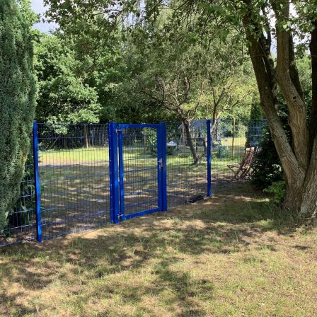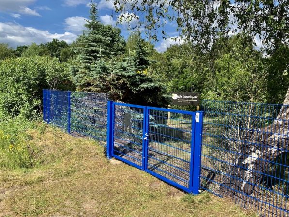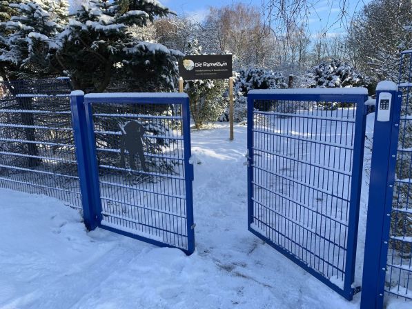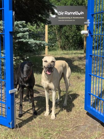 Zusätzlicher Benefit: Das Trainingsgelände ist in 2 Segmente unterteilt. So können die Welpen in 2 Freispielgruppen aufgeteilt werden, damit die Hunde zusammen spielen können, die gut zueinander passen, bzw. von- und miteinander im Spiel lernen können. Und bei Hundetraining mit erwachsenen aggressiven Kandidaten sind Übungsbegegnungen mit anderen Hunden so vollständig abgesichert möglich.